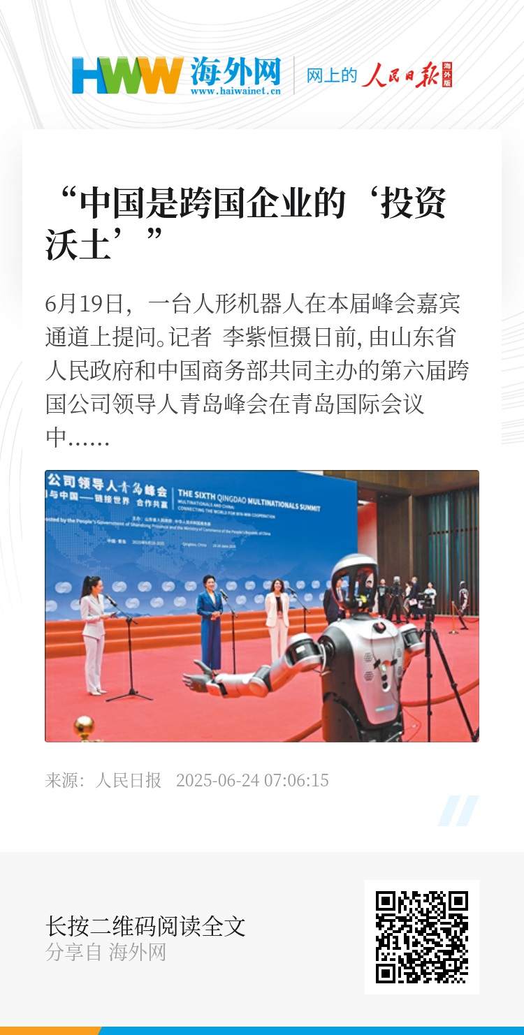 韩国希杰集团已多次参加峰会。该集团会长孙京植说,跨国公司领导人青岛峰会已成功举办6届,通过持续的开放对话机制,促进了跨国公司与中国市场之间的互惠共赢与可持续发展,成为跨国公司了解中国、投资中国的重要平台。中国通过推进高水平对外开放,积极应对世界经济的不确定性,将为全球经济稳定与发展注入强大动力。