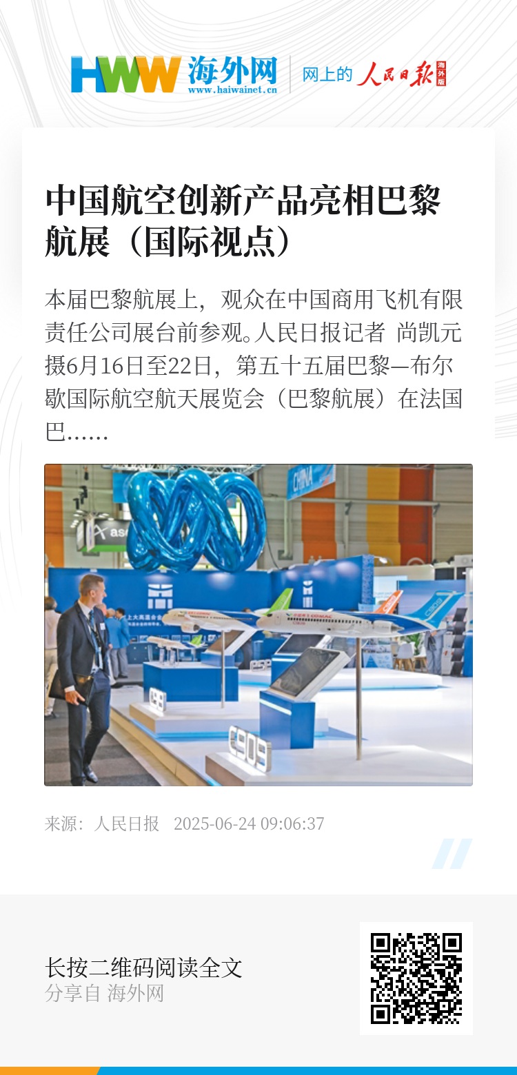 6月16日至22日,第五十五届巴黎—布尔歇国际航空航天展览会(巴黎航展)在法国巴黎举行,来自48个国家和地区的2500余家企业齐聚一堂,共展全球航空航天领域创新成果。70余家中国展商携创新产品参展,业务覆盖整机制造、核心部件、先进材料、智能制造等全产业链环节,立体呈现中国航空工业的发展水平和创新实力。