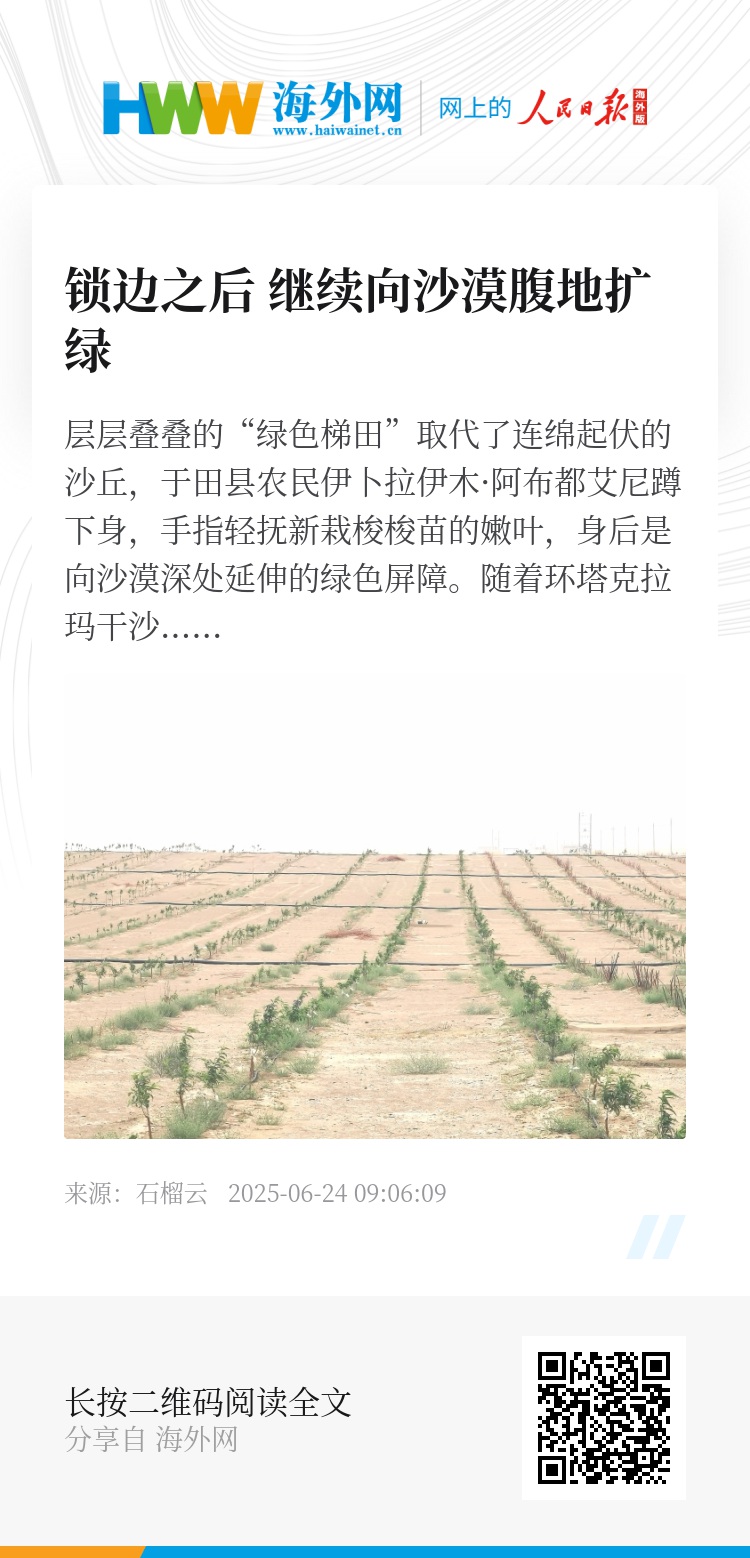锁边合龙,缝合的是风沙肆虐最甚的“伤口”,开启的则是巩固成果、纵深推进的新征程。新疆各地正以坚定的步伐,将这条来之不易的绿色生命线,不断向沙漠深处、向更广阔的区域延伸、加厚。
