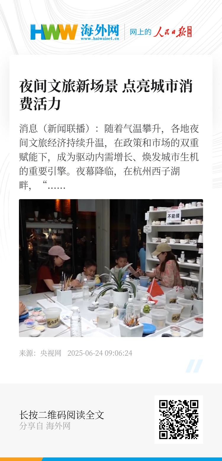央视网消息(新闻联播):随着气温攀升,各地夜间文旅经济持续升温,在政策和市场的双重赋能下,成为驱动内需增长、焕发城市生机的重要引擎。