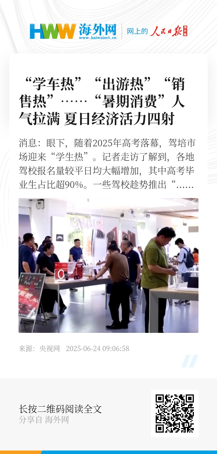 驾校工作人员介绍,6月至8月是高考生报名学车的高峰期;不少驾校还推出“凭准考证享优惠”“当天报名当天练车”的福利,进一步服务考生。