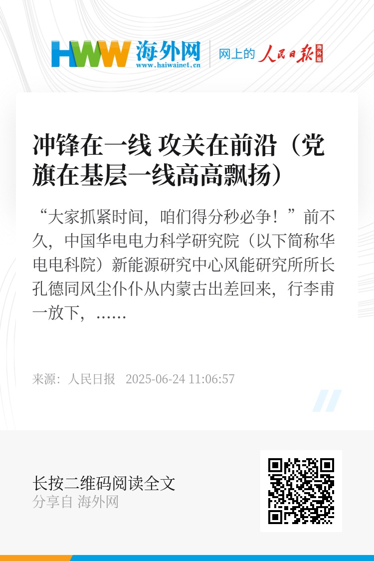冲锋在一线,攻关在前沿。如今,从高原电站到海上风电场,从数智化电厂建设现场到智慧运维平台研发实验室,华电电科院37个党支部近700名党员,竖起一面面冲锋的旗帜,用忠诚与担当书写着以高质量党建引领保障高质量发展的华彩篇章。(记者 何昭宇)
