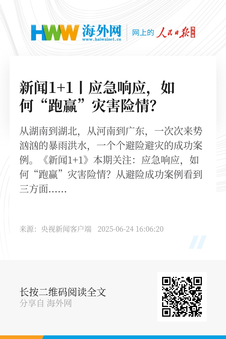 从湖南到湖北,从河南到广东,一次次来势汹汹的暴雨洪水,一个个避险避灾的成功案例。《新闻1+1》本期关注:应急响应,如何“跑赢”灾害险情?
