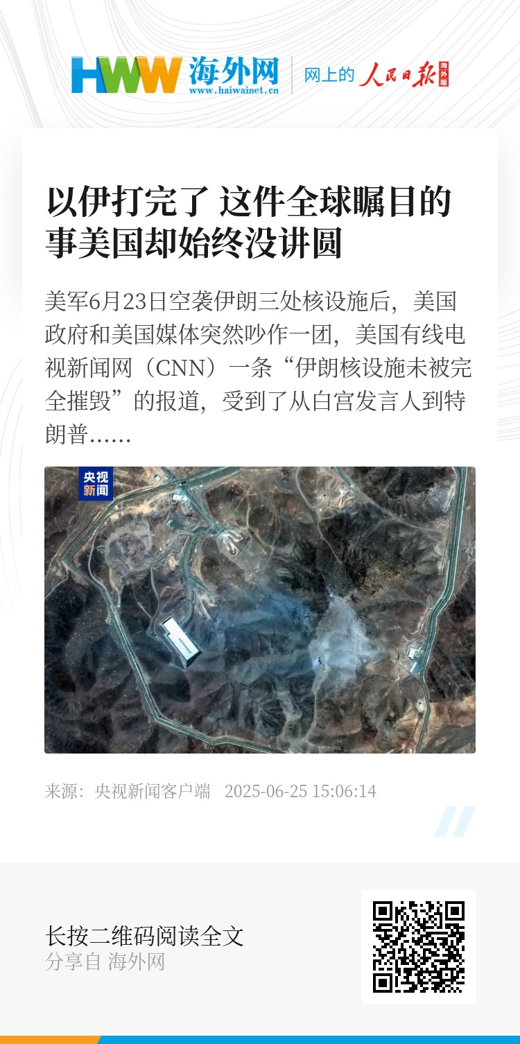 《纽约时报》也报道说,美军的打击仅封住了两个核设施的入口,并没有摧毁其地下建筑。伊朗核项目发展或将延迟,但预计延迟时间不会超过6个月。