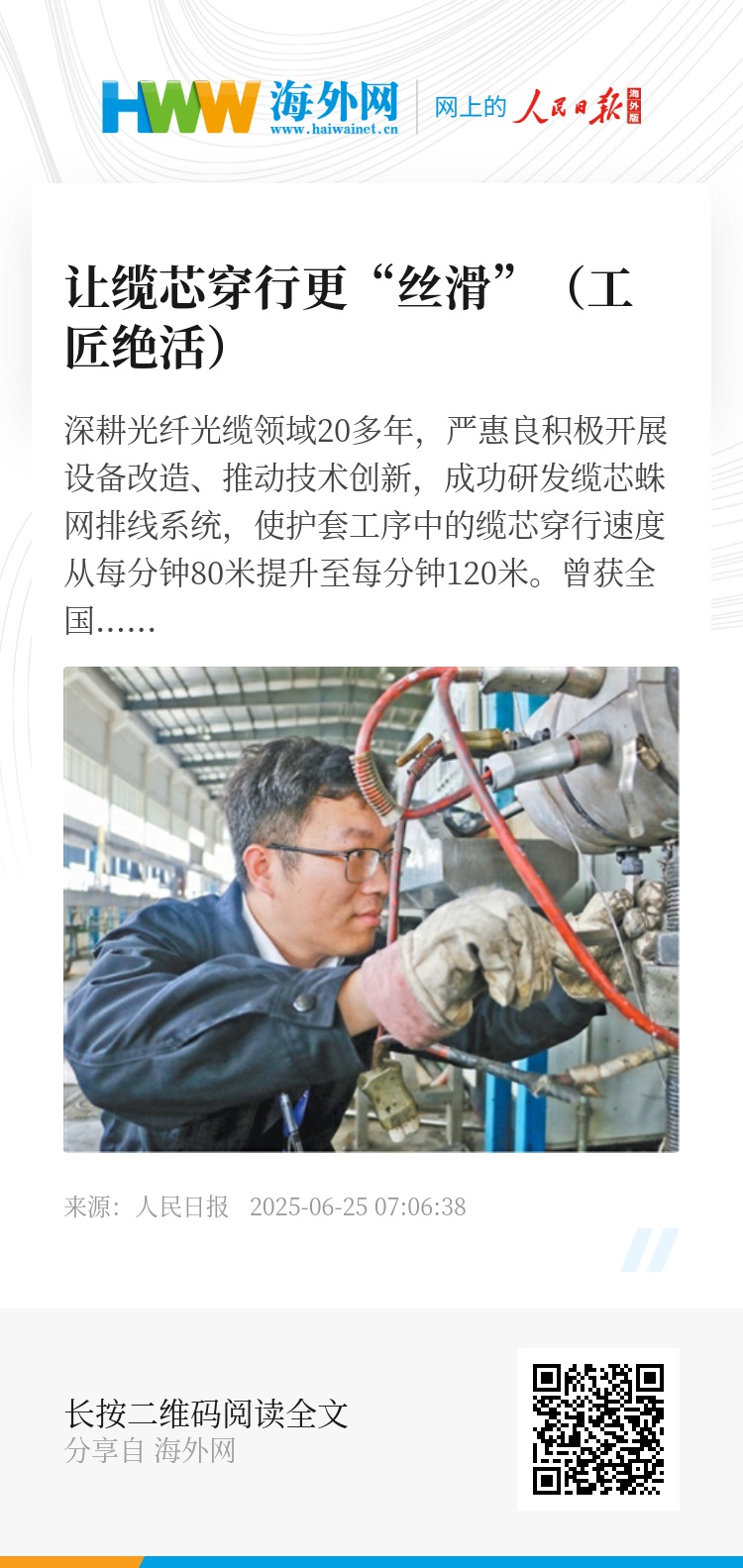 “老模具就好比拼装积木,安装后还要调整偏心,至少得用30分钟。”严惠良说,“新模具则是一个整体,避免了人工安装造成的误差。”这一技术革新,让光缆成品截面的偏心度控制在0.2毫米以内,在业内也属少见。