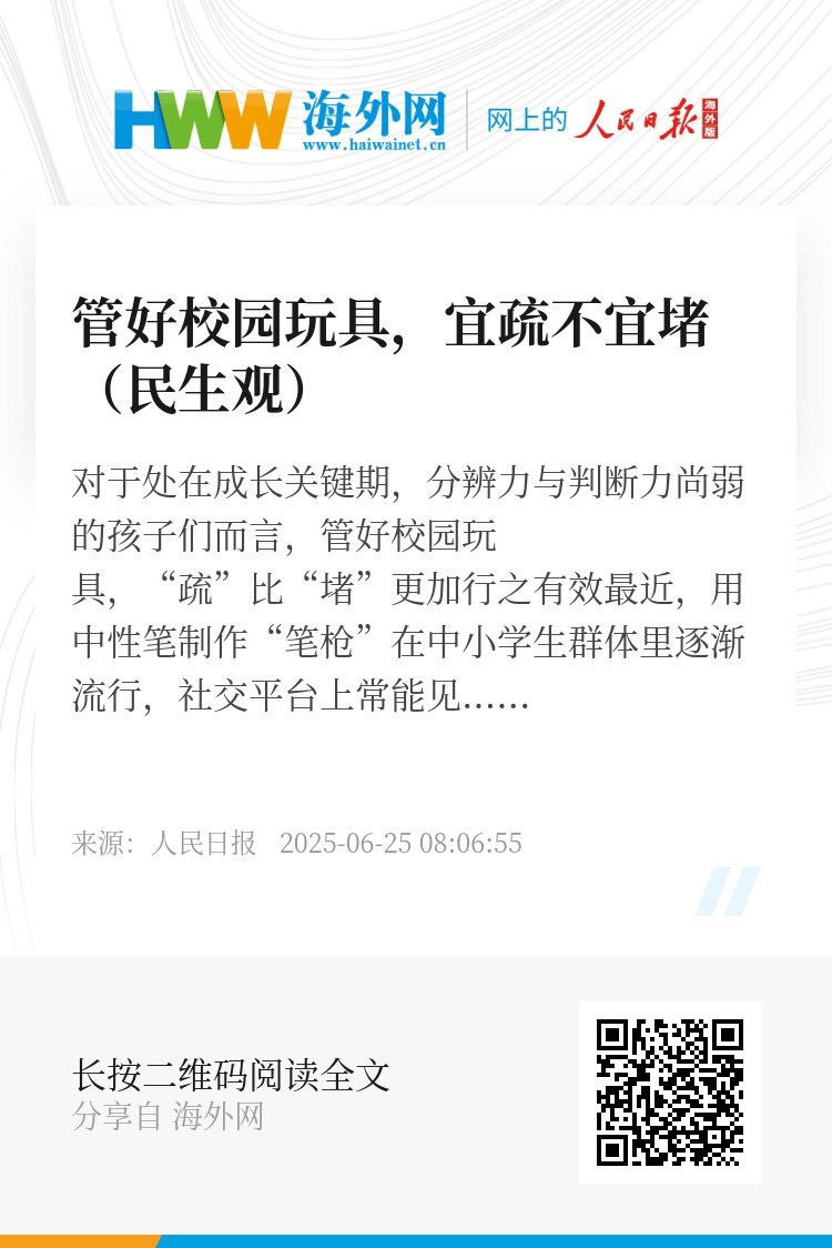 对于处在成长关键期,分辨力与判断力尚弱的孩子们而言,管好校园玩具,“疏”比“堵”更加行之有效