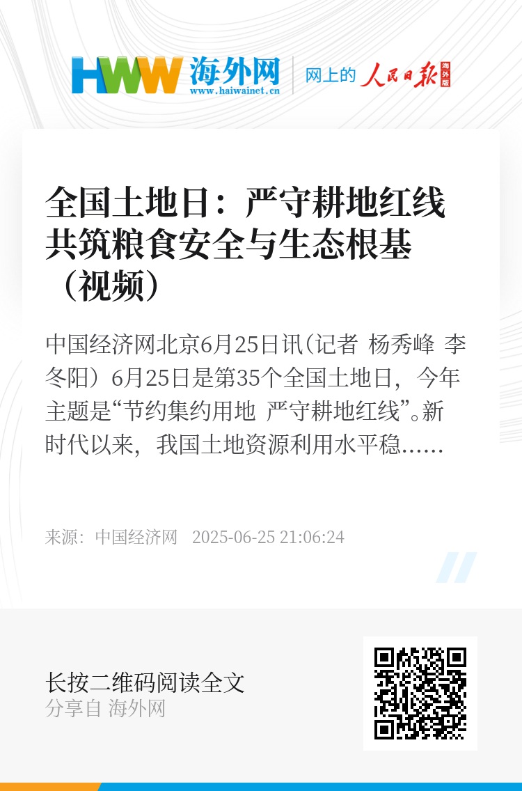 中国经济网北京6月25日讯(记者 杨秀峰 李冬阳)6月25日是第35个全国土地日,今年主题是“节约集约用地 严守耕地红线”。