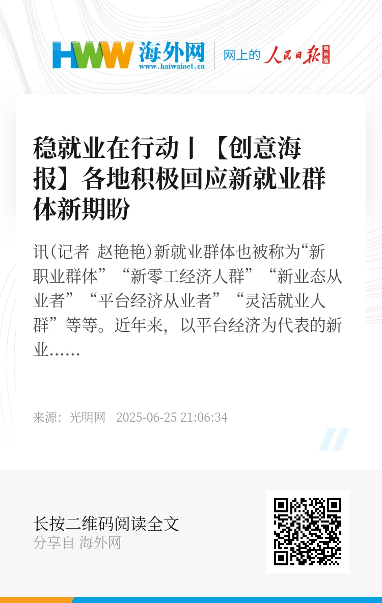 新就业群体的“新”,既体现着职业形态的创新,也彰显出时代精神的革新。在促进高质量充分就业的道路上,每一个新就业群体成员都是不可或缺的力量。