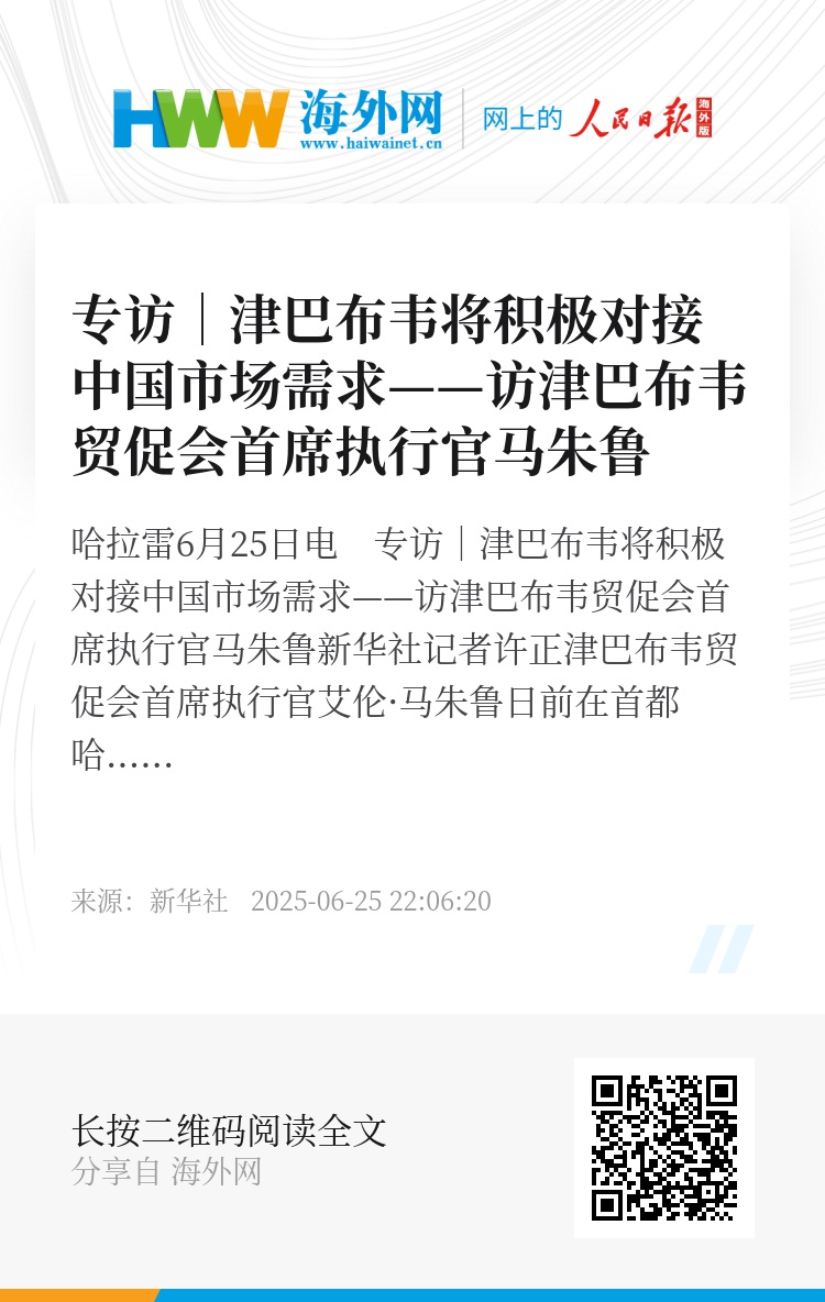 新华社哈拉雷6月25日电 专访|津巴布韦将积极对接中国市场需求——访津巴布韦贸促会首席执行官马朱鲁