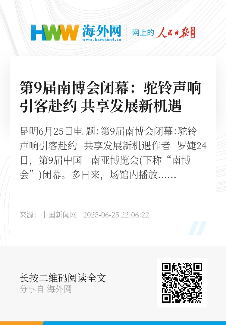 中新网昆明6月25日电 题:第9届南博会闭幕:驼铃声响引客赴约 共享发展新机遇