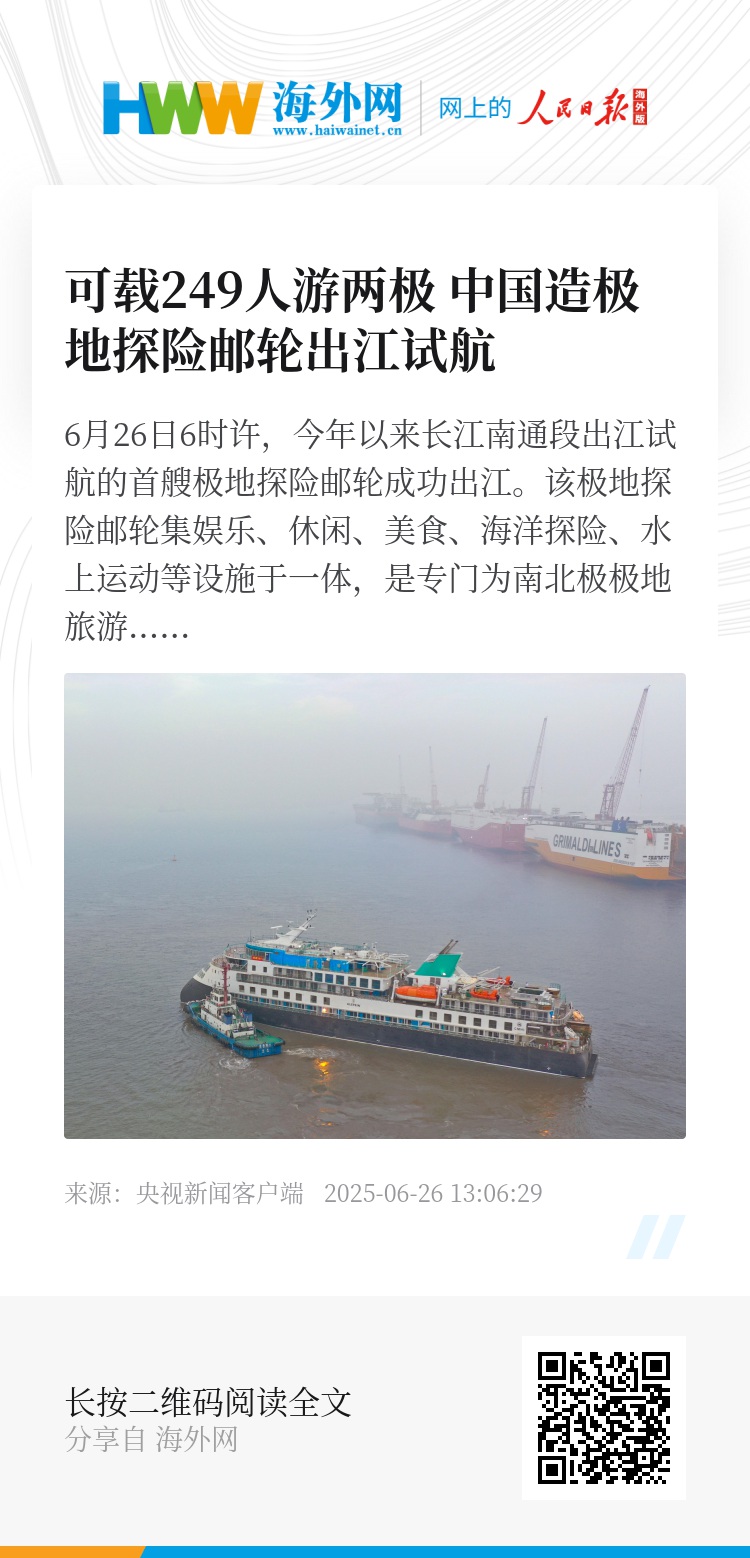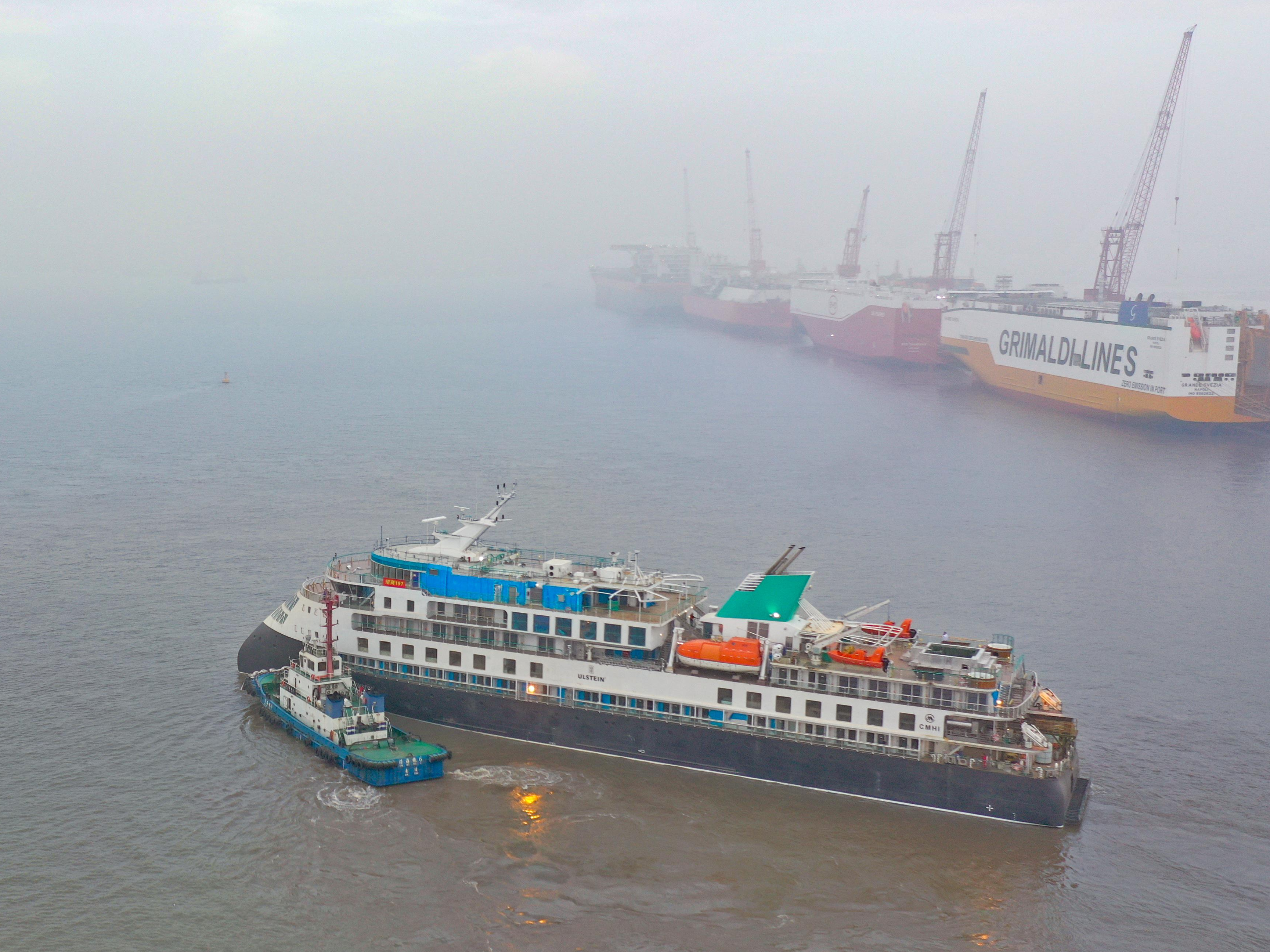 6月26日6时许,今年以来长江南通段出江试航的首艘极地探险邮轮成功出江。