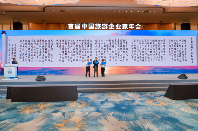 会上,三代企业家代表何永智、刘江敏、谢萌宣读《中国旅游企业家宣言》。