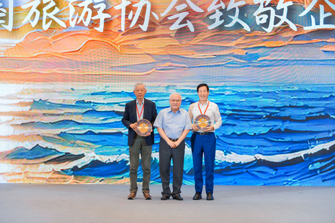会上举行2025年中国旅游协会致敬企业家仪式,两位新生代企业家孙晓东和邱凯分别宣读王正华、陈妙林的致敬词。