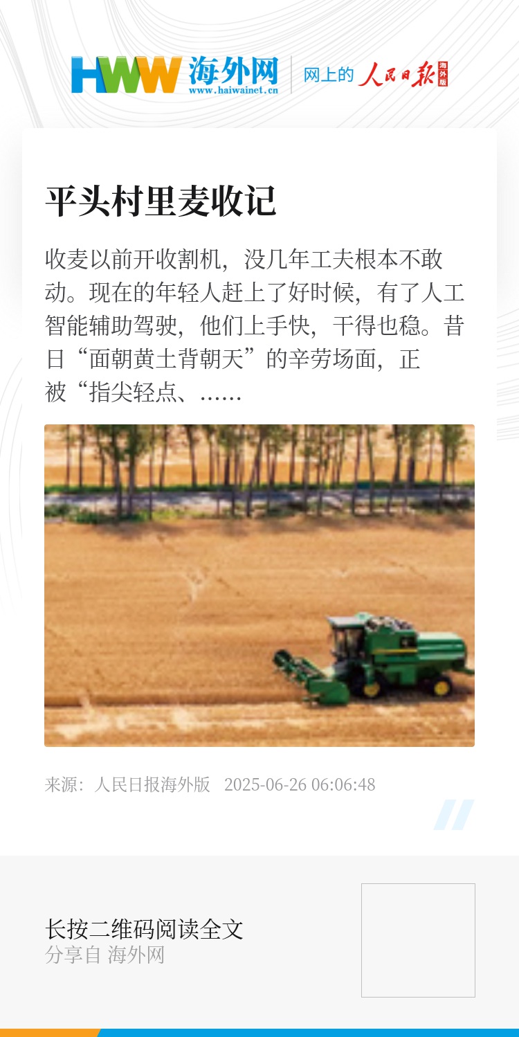 “收在田里、吃在嘴里、甜在心里”,在这个丰收的夏日,平头村在金黄的田野上写下了一篇“科技赋能、颗粒归仓、产业融合”的麦收新记。