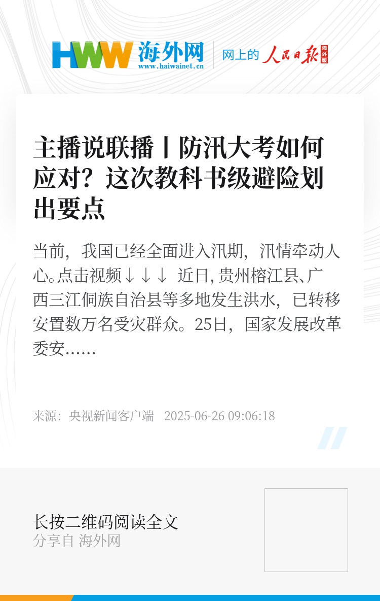 当前,我国已经全面进入汛期,汛情牵动人心。点击视频↓↓↓
