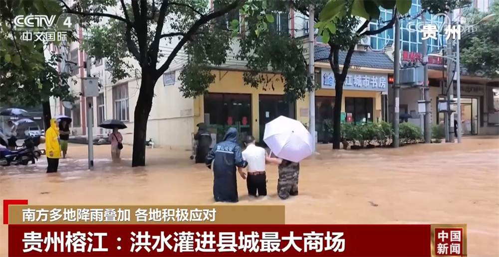 受持续强降雨和上游来水影响,贵州榕江县和从江县24日先后经历洪峰过境,县城多地被淹。有居民在社交平台发布了一段榕江县最大商城被淹的视频。视频中,商场内部,水沿着电梯向下流,一楼商铺被淹没了一半多。据了解,在洪水到来前,为了保证员工们的安全,商场全体人员已经被安全撤离。
