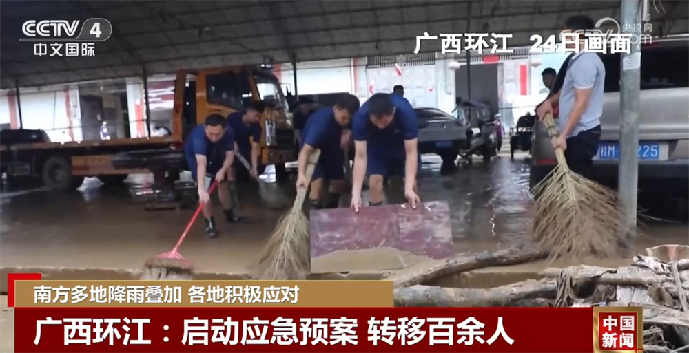 24日凌晨,广西环江驯乐苗族乡遭遇强降雨,导致河流涨水,主干道和农田被淹,有的路段塌方,部分地区停电,一些临街商铺进水。当地启动应急预案,紧急转移低洼地区的百余名群众。目前,各河段水位已逐渐回落,驯乐乡主干道淤泥已基本清除,群众的生产生活正逐渐恢复。