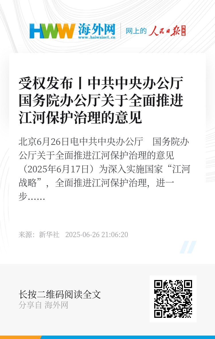 为深入实施国家“江河战略”,全面推进江河保护治理,进一步提升水安全保障能力,经党中央、国务院同意,现提出如下意见。