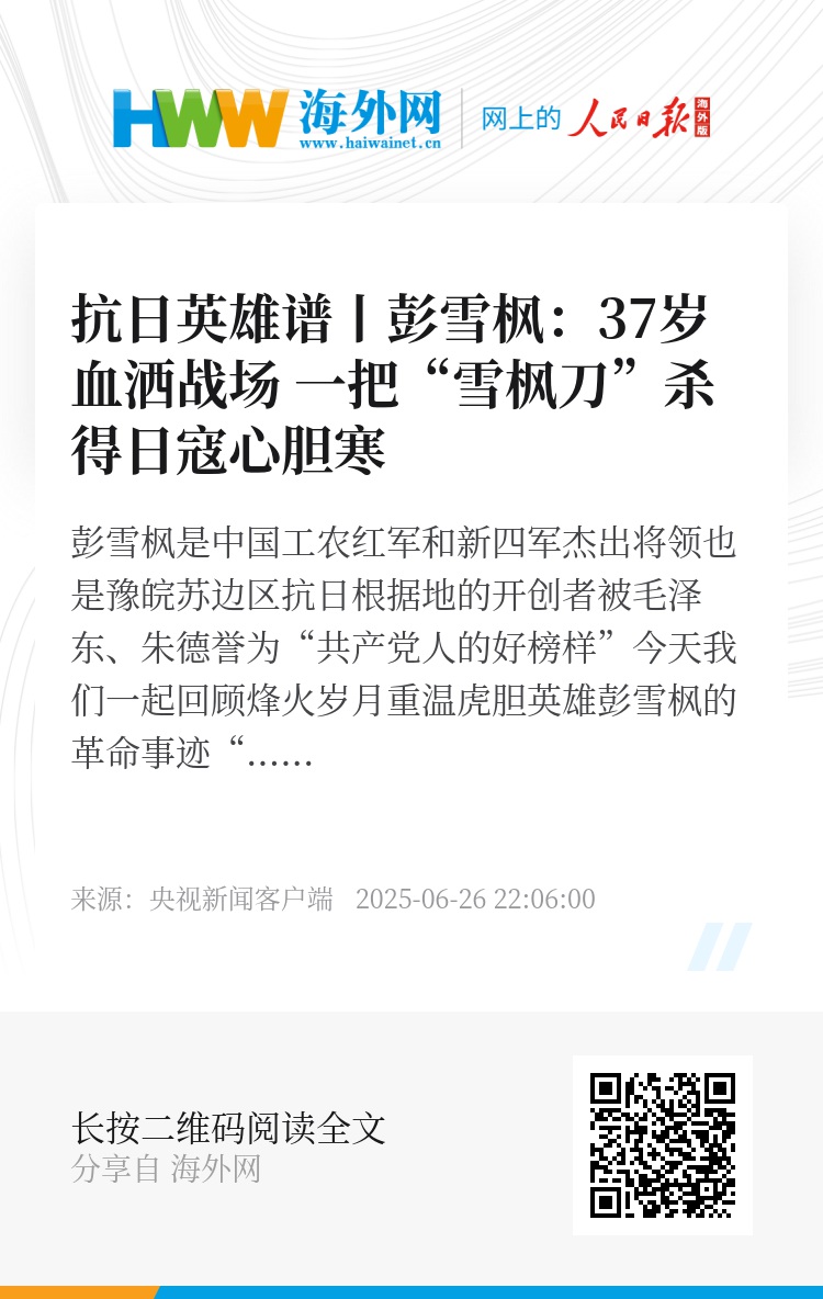彭雪枫,1907年出生于河南省镇平县,1926年9月加入中国共产党。红军长征期间,他率军攻占娄山关,直取遵义城,横渡金沙江,多次在险境中出奇制胜,屡建功勋。