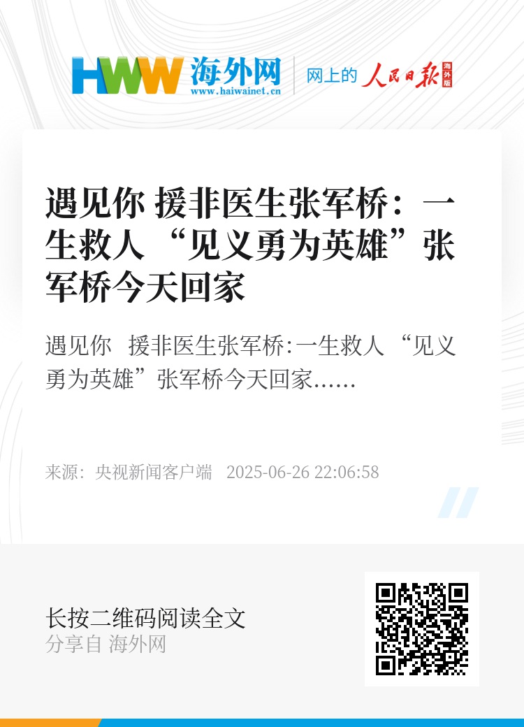 遇见你 援非医生张军桥:一生救人 “见义勇为英雄”张军桥今天回家