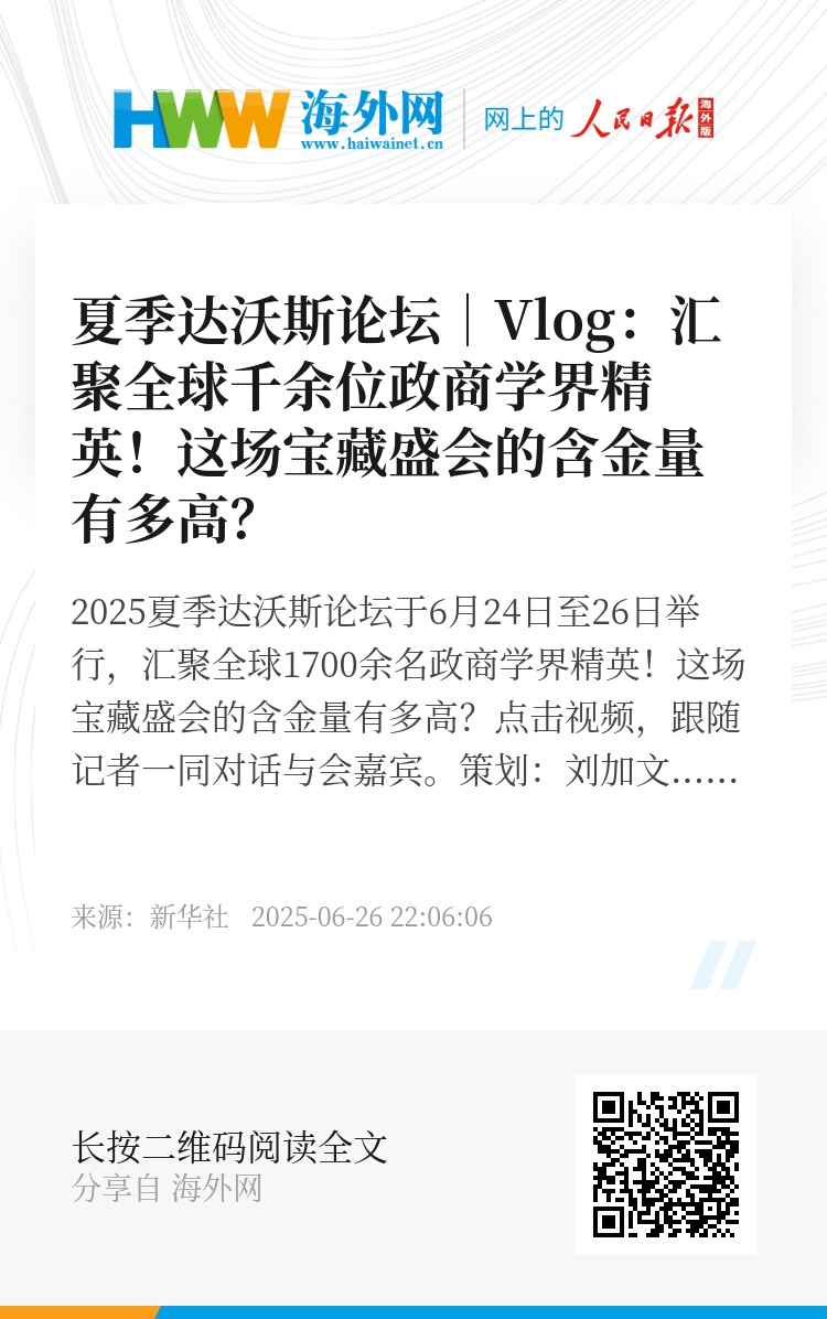 2025夏季达沃斯论坛于6月24日至26日举行,汇聚全球1700余名政商学界精英!这场宝藏盛会的含金量有多高?点击视频,跟随记者一同对话与会嘉宾。