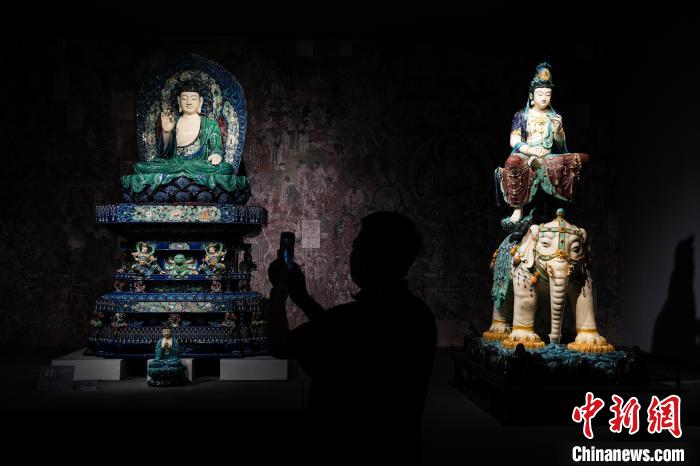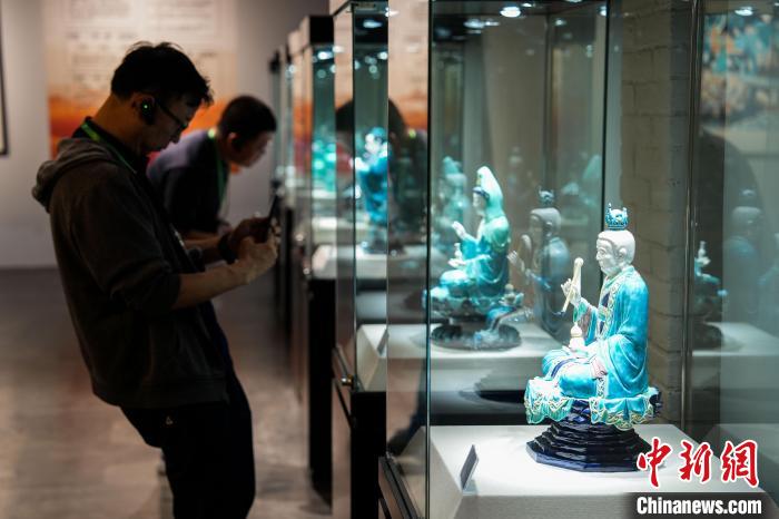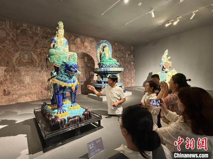 高平珐华艺术馆内陈列的珐华造像吸引了海外华文媒体记者的眼光。山西省工艺美术大师、三晋工匠、“山西三宝·高平珐华”创始人、高平市珐华艺术研究院院长张勇勇介绍,高达1.85米的《文殊菩萨乘青狮》造像,其悬空式烧制技术突破了古代珐华造像技艺的最高境界。