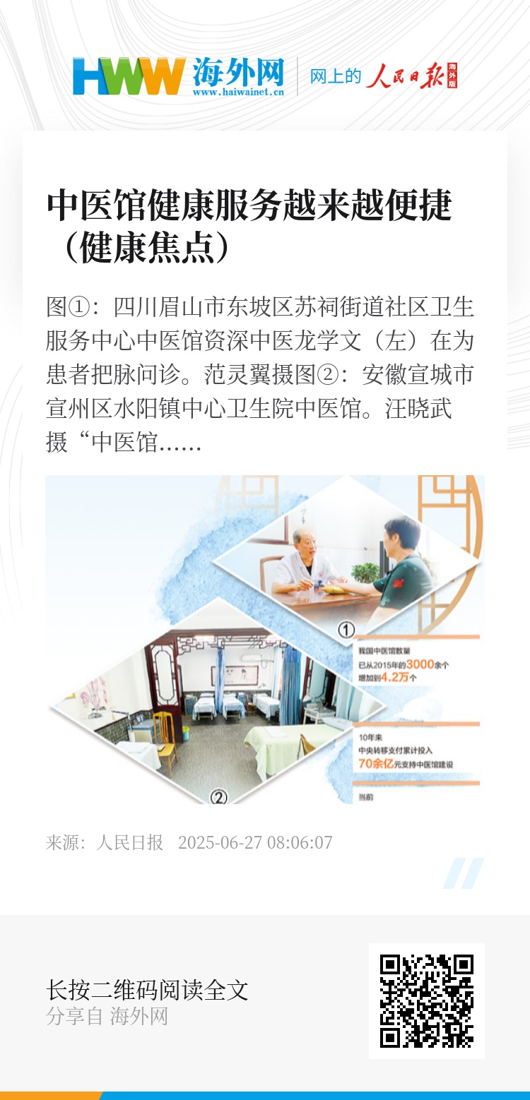国家中医药管理局公布的数据显示,我国中医馆数量已从2015年的3000余个增加到4.2万个。近年来,中医馆实现了“从无到有”的突破、走上了“从有到优”的发展路径,成为群众身边的健康“守门人”。这些年,中医馆发生了什么变化,能为群众提供哪些健康服务?记者进行了采访。