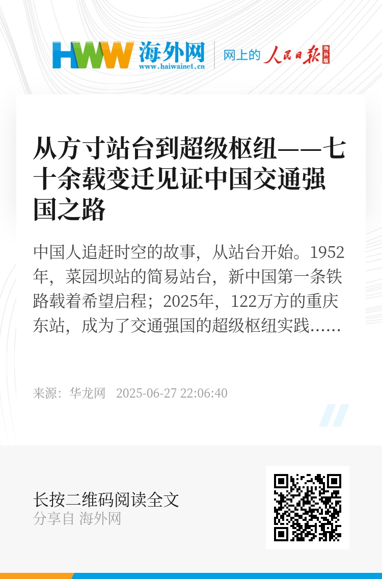 中国铁路枢纽七十余载的变迁,早已超越了建筑形态的迭代:铁轨尽头的“起点站”,已成站城共生的“生长极”;汽笛回响的“中转场”,化作四网融合的“动力核”。