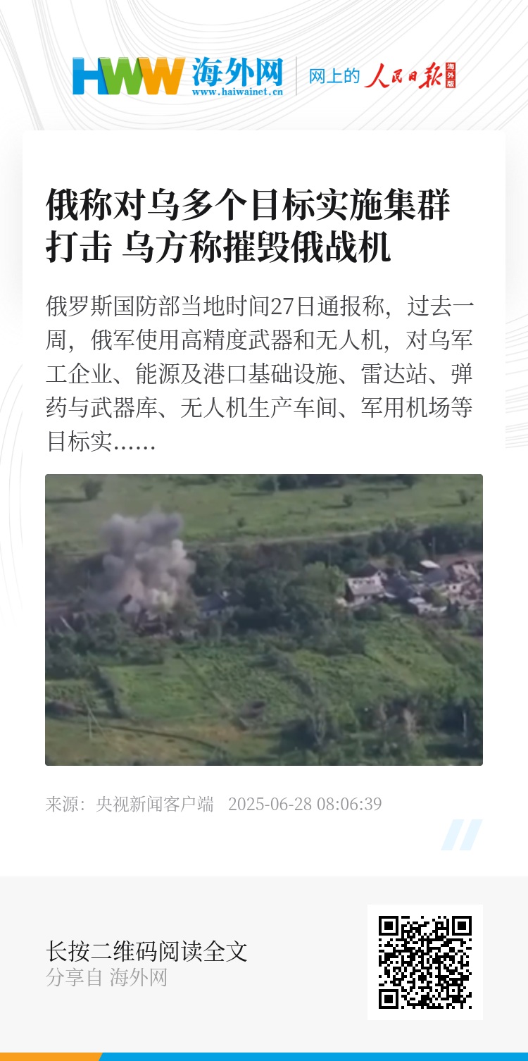 俄罗斯国防部当地时间27日通报称,过去一周,俄军使用高精度武器和无人机,对乌军工企业、能源及港口基础设施、雷达站、弹药与武器库、无人机生产车间、军用机场等目标实施了六次高精度武器集群打击。此外,俄军控制了哈尔科夫和顿涅茨克方向的8个居民点。