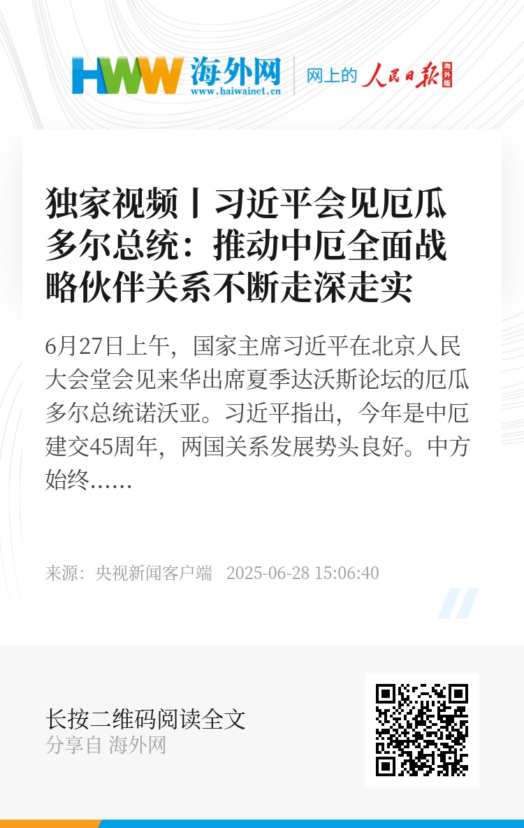 6月27日上午,国家主席习近平在北京人民大会堂会见来华出席夏季达沃斯论坛的厄瓜多尔总统诺沃亚。