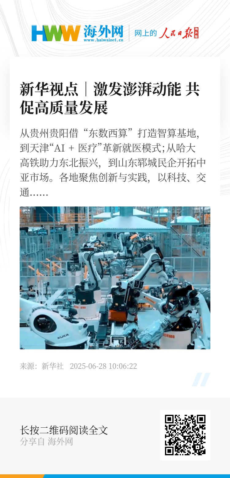 从贵州贵阳借“东数西算”打造智算基地,到天津“AI + 医疗”革新就医模式;从哈大高铁助力东北振兴,到山东郓城民企开拓中亚市场。各地聚焦创新与实践,以科技、交通、外贸等为抓手,激发发展新动能,共绘高质量发展新画卷。