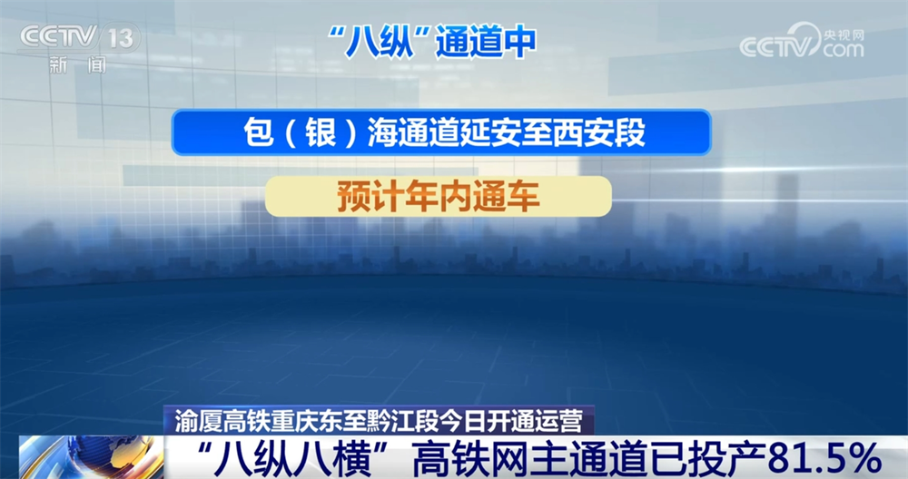 向东,推进“八纵八横”高铁骨干通道——沪渝蓉沿江高铁的成渝中线、成达万高铁、宜昌至涪陵高铁正在加紧建设;向南,渝昆高铁川滇段最后一个筠连隧道即将贯通,协同推进黄桶至百色铁路建设,增强西部陆海新通道运能;向北,“八纵八横”高铁网京昆通道的西渝高铁渝康段即将进入全线铺轨阶段,西宁至成都铁路四川段进入站房施工阶段,打通对接“丝绸之路”经济带的国际大通道。