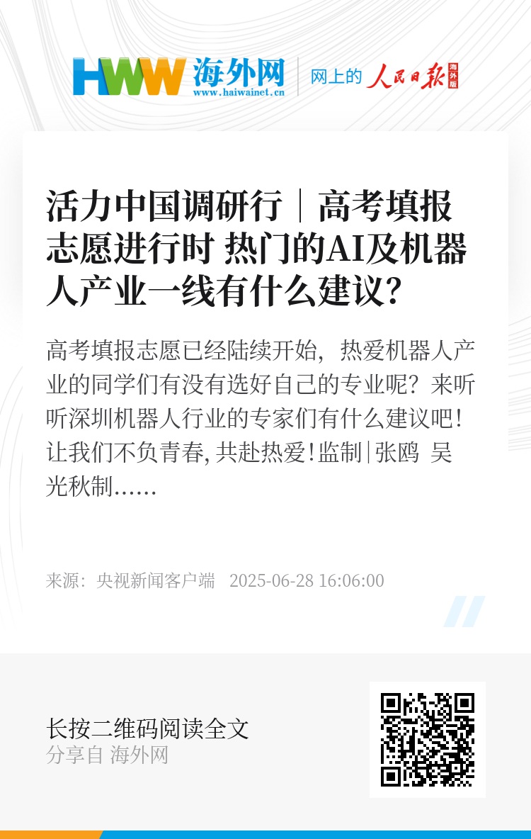 高考填报志愿已经陆续开始,热爱机器人产业的同学们有没有选好自己的专业呢?来听听深圳机器人行业的专家们有什么建议吧!让我们不负青春,共赴热爱!