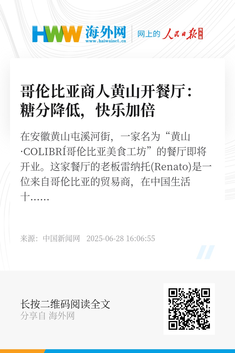 在安徽黄山屯溪河街,一家名为“黄山·COLIBRÍ哥伦比亚美食工坊”的餐厅即将开业。这家餐厅的老板雷纳托(Renato)是一位来自哥伦比亚的贸易商,在中国生活十多年后,他选择携家人定居黄山,并将正宗的哥伦比亚美食带到这里。(刘鸿鹤 任俊翔 安徽黄山报道)
