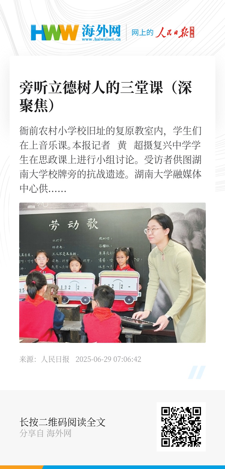 “七一”来临之际,记者分别走进一所与中国共产党同龄的村小、一所以复兴为名的中学、一所留存抗战遗迹的大学,旁听了三堂课,从课程思政到思政课程,再到社会大课堂,感受思政课建设焕发出新的活力。