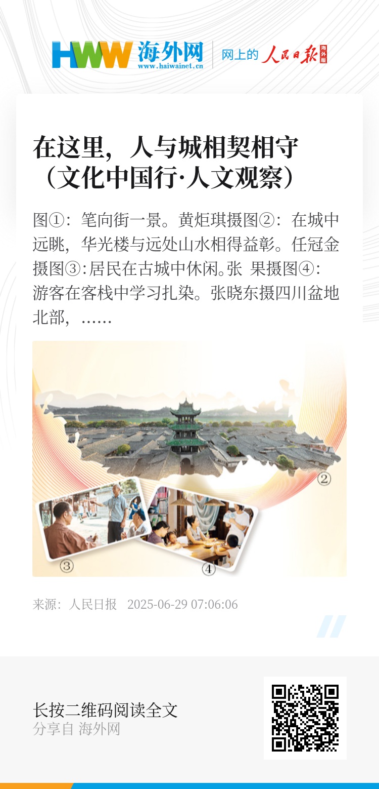 阆山高,阆水长。一座古城,流淌着人城相契的故事,延续着传统与现代的脉络,生生不息。古树下的坝坝茶摊,有故人也有游人;城中的中天楼连通东南西北,穿行的人诉说过往,更讲着当下,聊着未来。(记者 何思琦)