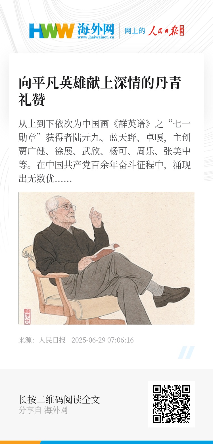 《群英谱》的主角,是29位“七一勋章”获得者。4年前的今天,“七一勋章”颁授仪式在人民大会堂隆重举行。29个闪亮的名字,深深镌刻在我心中。我开始思考,如何以笔墨为媒,向平凡英雄献上最深情的礼赞,将这份荣光凝铸为永恒的艺术史诗。我领衔主创,集中天津美术学院中国画专业的优秀教师组成创作团队,怀着对榜样的敬意,投入《群英谱》大型主题美术创作。