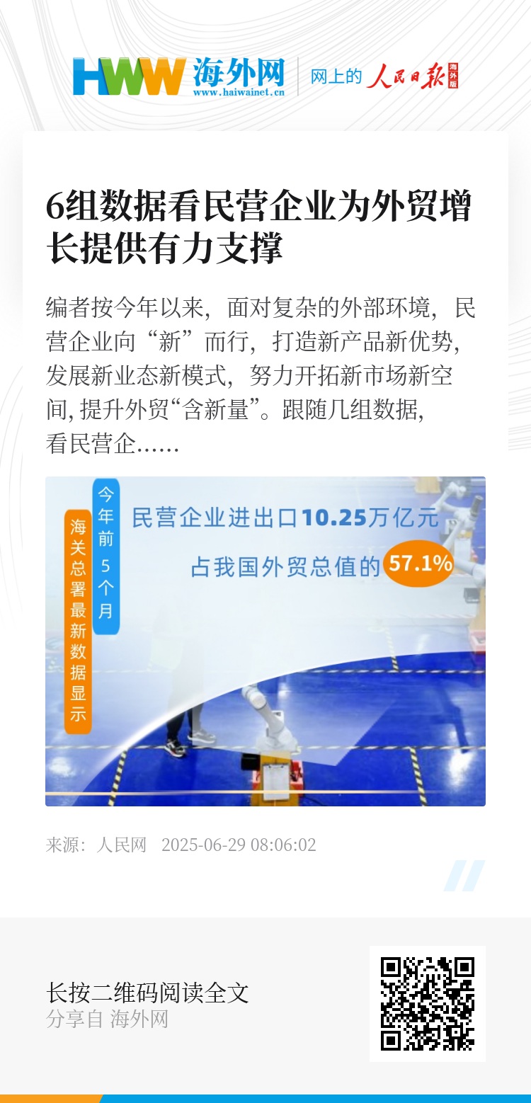 今年以来,面对复杂的外部环境,民营企业向“新”而行,打造新产品新优势,发展新业态新模式,努力开拓新市场新空间,提升外贸“含新量”。 跟随几组数据,看民营企业不断加大科技创新和品牌建设力度,迸发外贸发展新活力。