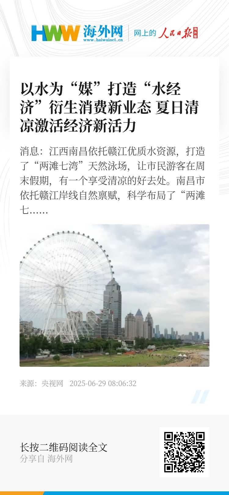 南昌市依托赣江岸线自然禀赋,科学布局了“两滩七湾”9处天然泳场,在这个夏季正式免费开放。