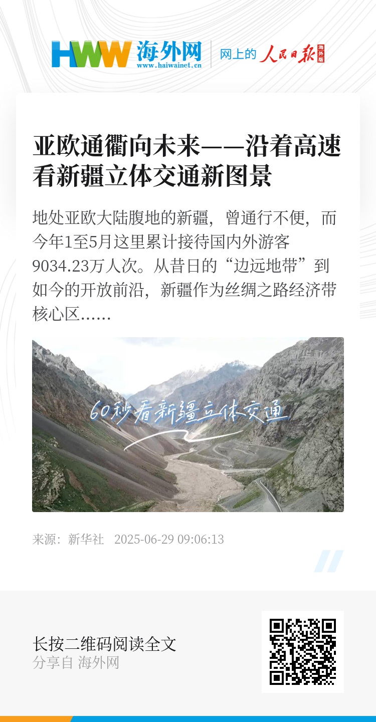 地处亚欧大陆腹地的新疆,曾通行不便,而今年1至5月这里累计接待国内外游客9034.23万人次。从昔日的“边远地带”到如今的开放前沿,新疆作为丝绸之路经济带核心区的枢纽地位日益显现,持续展现“亚欧通衢”的新图景。