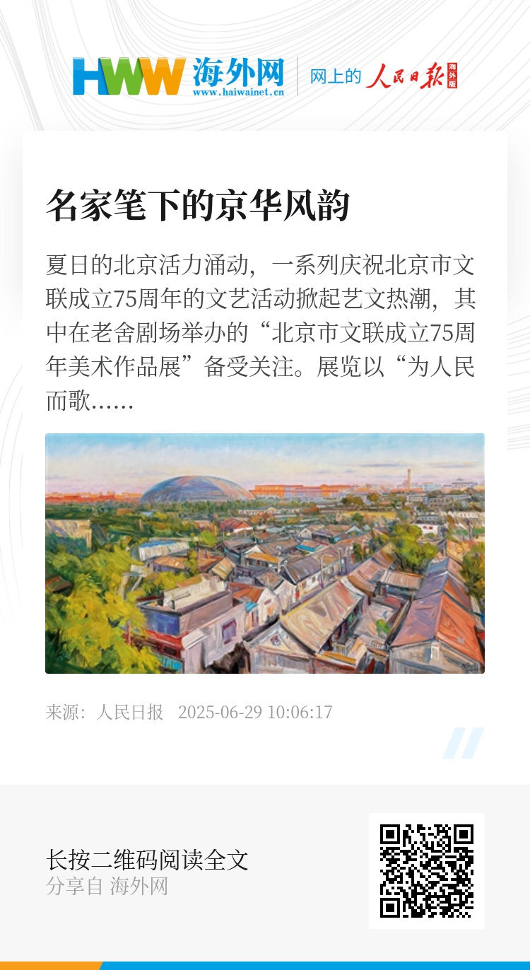 此次展览只是北京系列优秀美术作品展览的一个缩影。75年来,一代又一代美术工作者扎根北京文化沃土,以丹青讴歌人民、记录时代。特别是进入新世纪,北京市文联、北京美协先后多次组织首都画家画北京采风创作活动,并连续10余年成功举办“北京意象”“京城之脊·一脉绵延”等大型“丹青北京”系列主题美术作品展,成为铺展北京时代画卷的亮丽文化工程。持续书写首都美术创新发展的华章,已经成为北京美术工作者的责任共识。“为人民而歌”,我们始终在路上。