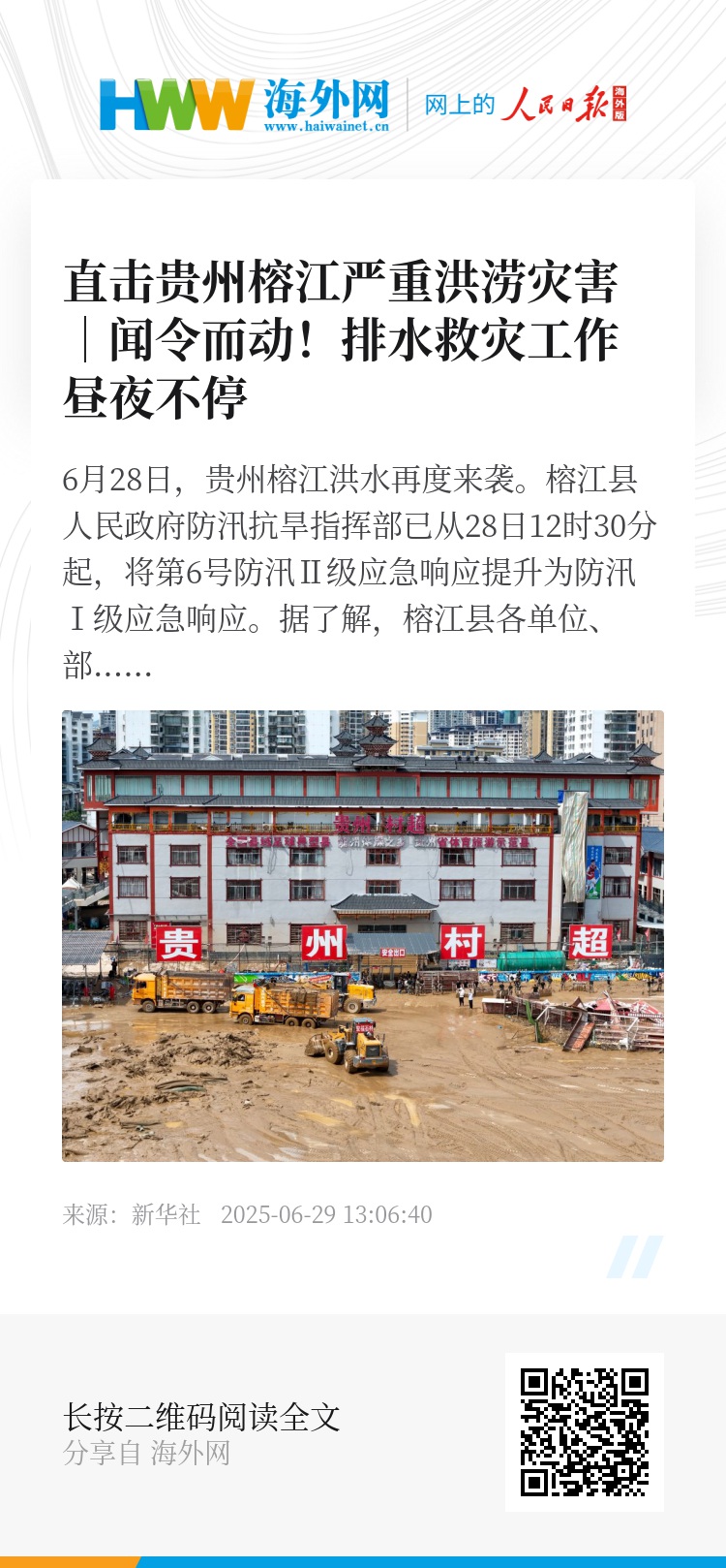 6月28日,贵州榕江洪水再度来袭。榕江县人民政府防汛抗旱指挥部已从28日12时30分起,将第6号防汛Ⅱ级应急响应提升为防汛Ⅰ级应急响应。据了解,榕江县各单位、部门已组织群众转移到安全地带。目前,榕江抗洪救灾工作正有序推进。