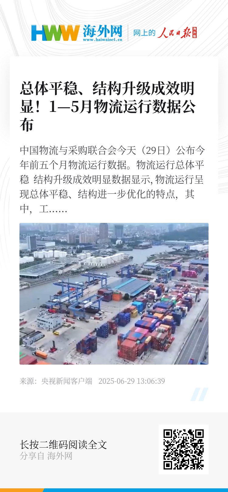 数据显示,物流运行呈现总体平稳、结构进一步优化的特点,其中,工业品物流增势平稳,民生消费物流需求加速释放。