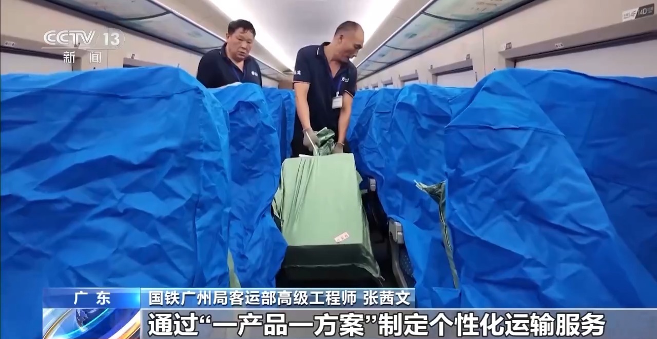 国铁广州局客运部高级工程师 张茜文:结合专业的冷链技术,铁路部门搭建起了一套高效的运输网络,结合高铁载客列车、确认车、行李车等运力资源,通过“一产品一方案”制定个性化运输服务,让全国各地的消费者都能吃上岭南新鲜的农产品。