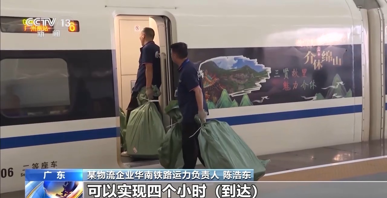 某物流企业华南铁路运力负责人 陈浩东:从广州到武汉如果走冷链车的话,要15个小时左右,通过现在高铁运输,可以实现四个小时到达。