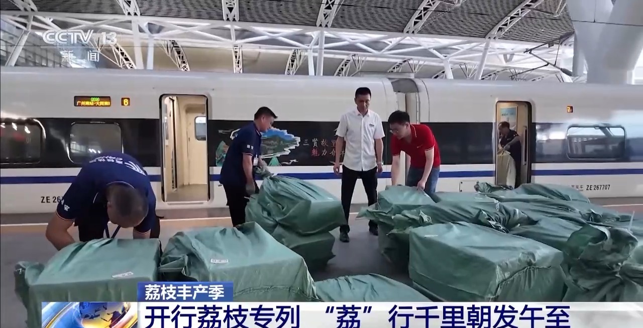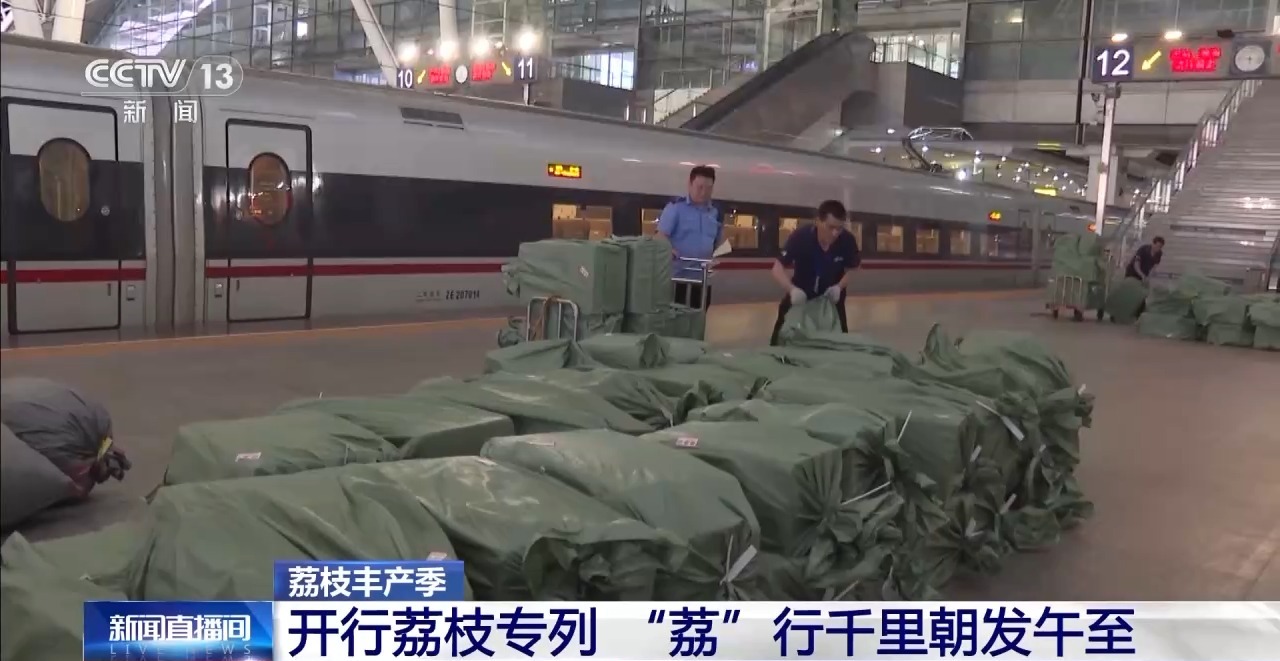 除了航空网络,铁路部门也利用富余运力开行荔枝专列,岭南荔枝半天内就能送到武汉。