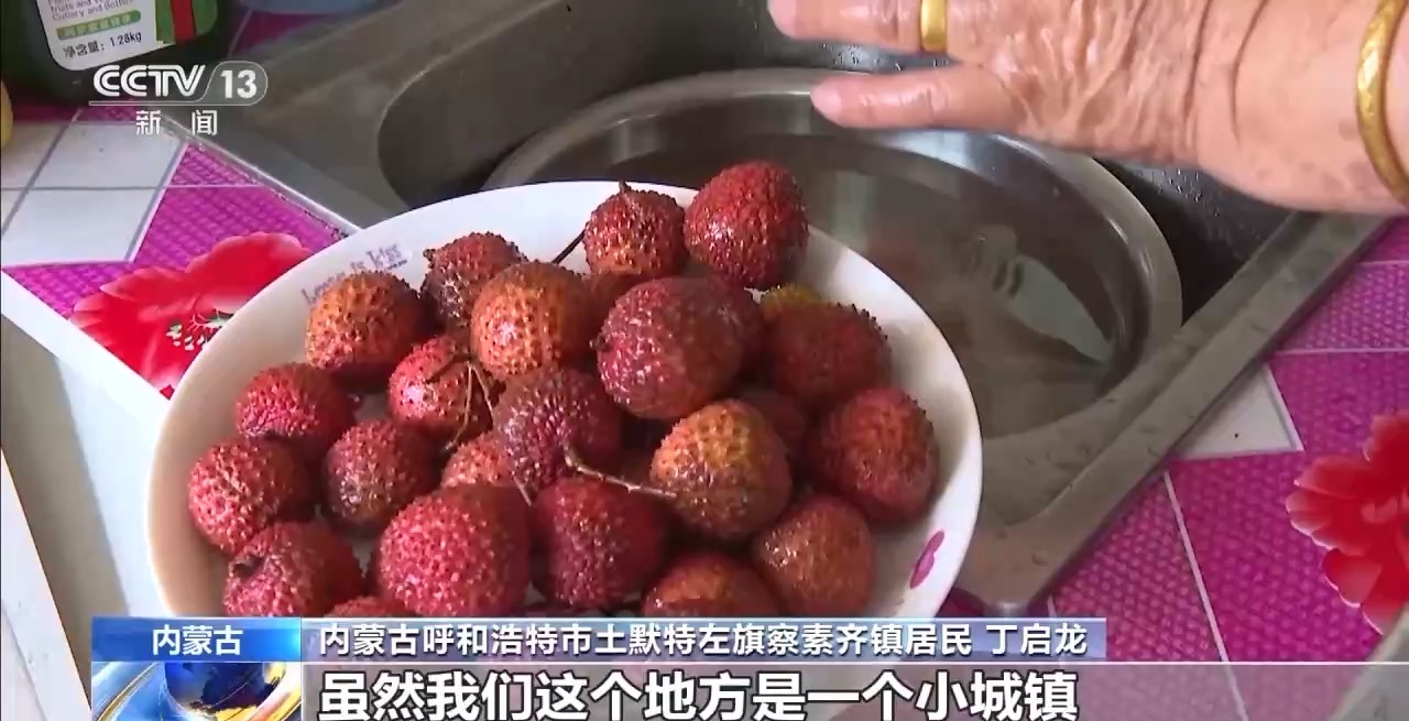 内蒙古呼和浩特市土默特左旗察素齐镇居民 丁启龙:荔枝挺新鲜的。昨天上午9点我下的单,今天上午8点多就已经到了我们这儿了,虽然我们这个地方是一个小城镇,但是特别方便。真没想到从大南方买的水果,今天一早上都来了大北方了。