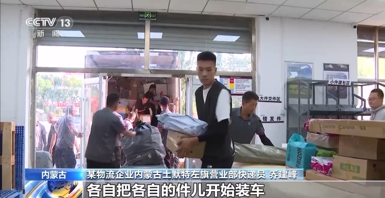 某物流企业内蒙古土默特左旗营业部快递员 乔建峰:大家一起卸车分拣,卸完车之后,各自把各自的件装车,8点左右开始送。