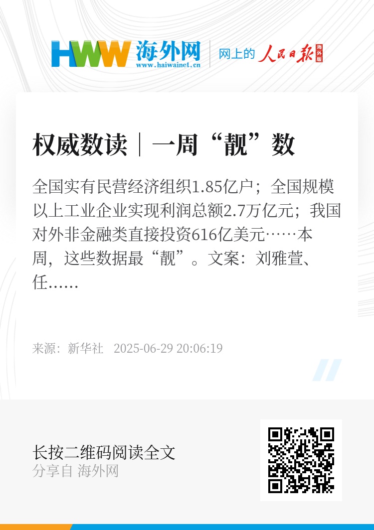 全国实有民营经济组织1.85亿户;全国规模以上工业企业实现利润总额2.7万亿元;我国对外非金融类直接投资616亿美元……本周,这些数据最“靓”。
