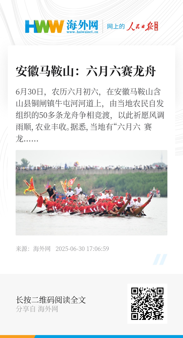 6月30日,农历六月初六,在安徽马鞍山含山县铜闸镇牛屯河河道上,由当地农民自发组织的50多条龙舟争相竞渡,以此祈愿风调雨顺,农业丰收。据悉,当地有“六月六 赛龙舟”的传统习俗,至今已延续数百年。图源:IC photo